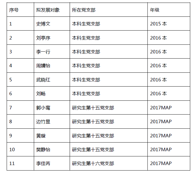 | 【公示】心理学部党委2018年春季学期拟发展学生党员公示 |