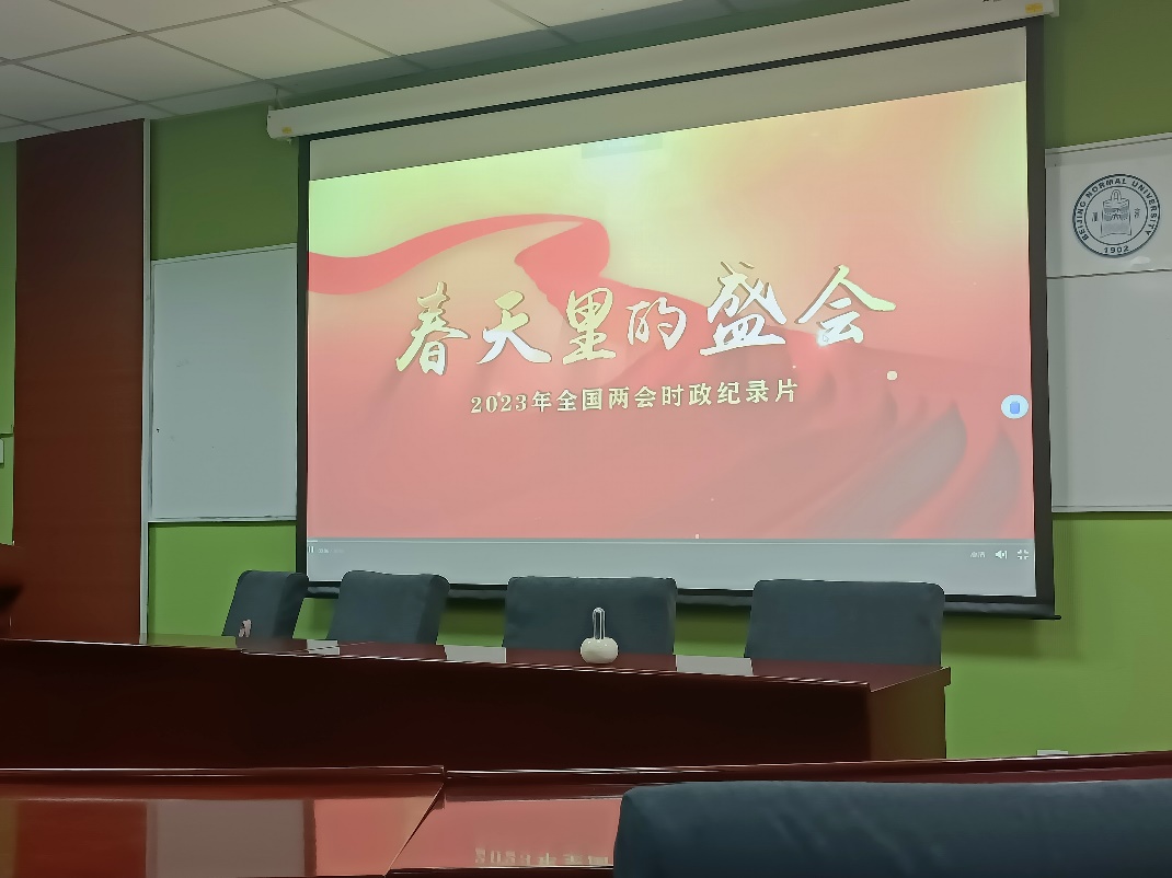 随后,全体成员一起观看了2023年全国两会实证记录片:春天里的盛会。