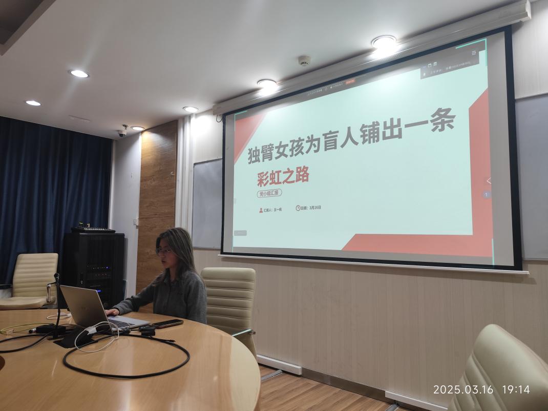 王一帆同志以“独臂女孩为盲人铺彩虹之路”为主题,讲述了残障人士通过艺术实践呼吁社会关注盲道治理的案例,强调盲道建设需政府、社会、个人协同发力,提出加强无障碍设施管理、提升公众意识等建议。讨论环节中,党员们就老年人健身器材创新设计提出建议,包括开发室内适老化设施、优化器材说明及质量监管;针对盲道治理,大家认为需从规划科学性、执法力度及公众教育三方面推进。理论学习部分,会议回顾了党的二十大报告要点及二十届三中全会精神,强调理论学习对党员发展的重要性,并简要学习了两会关于科技创新、教育改革等议题的动态。