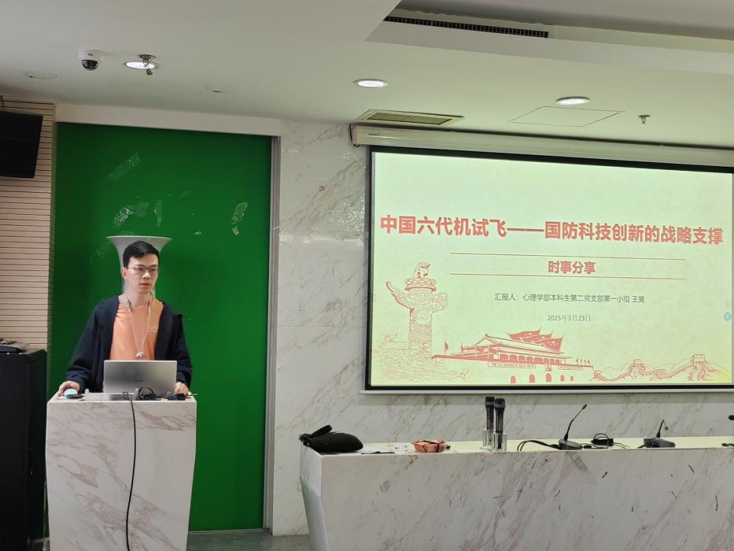 为切实提升学生党员的政治素养与实践能力,心理学部本科生第二党支部组织四个党小组于三月开展专题学习活动。其中,第1、2党小组分别围绕科研创新与社会治理主题展开研讨,第3、4党小组联合召开会议,聚焦党风建设与政策解读,通过多元视角深化理论学习与使命担当。 2025年3月23日17时30分,心理学部本科生第二党支部第1党小组在后主楼1318以线下的方式召开了三月党小组会。本次会议由孙聪慧同志主持,共15名同志参加,主题为励耘科研分享——本基体验、中国六代机试飞——国防科技创新的战略支撑。 本次党小组会邀请到22级励耘班的国家级奖学金获得者、国家级本基项目主持人沙瑞欣同志进行励耘科研分享。沙瑞欣同志首先介绍了申请本基项目的流程,再以自己为例介绍了项目进行中应该做什么,最后总结了参与本基的收获,具体详细地为小组同志们介绍了本基项目的有关事宜,为小组同志们尤其是初次参与科研的师弟师妹们提供了实用的经验指导。
