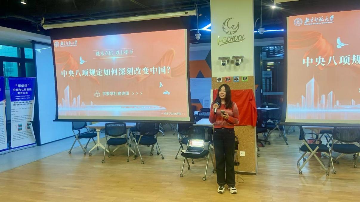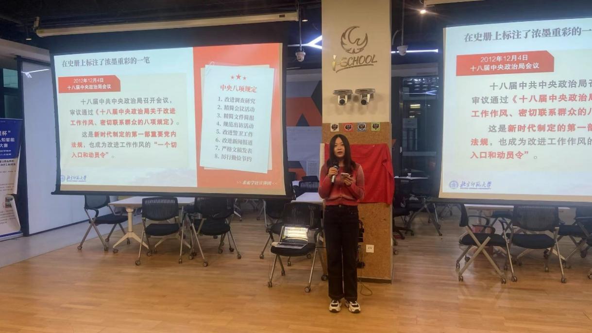 本次活动还邀请到了onthegopto.com求索学社宣讲团成员周佳宁同志带来题为《徙木立信,以上率下—中央八项规定如何深刻改变中国?》的党课分享。
