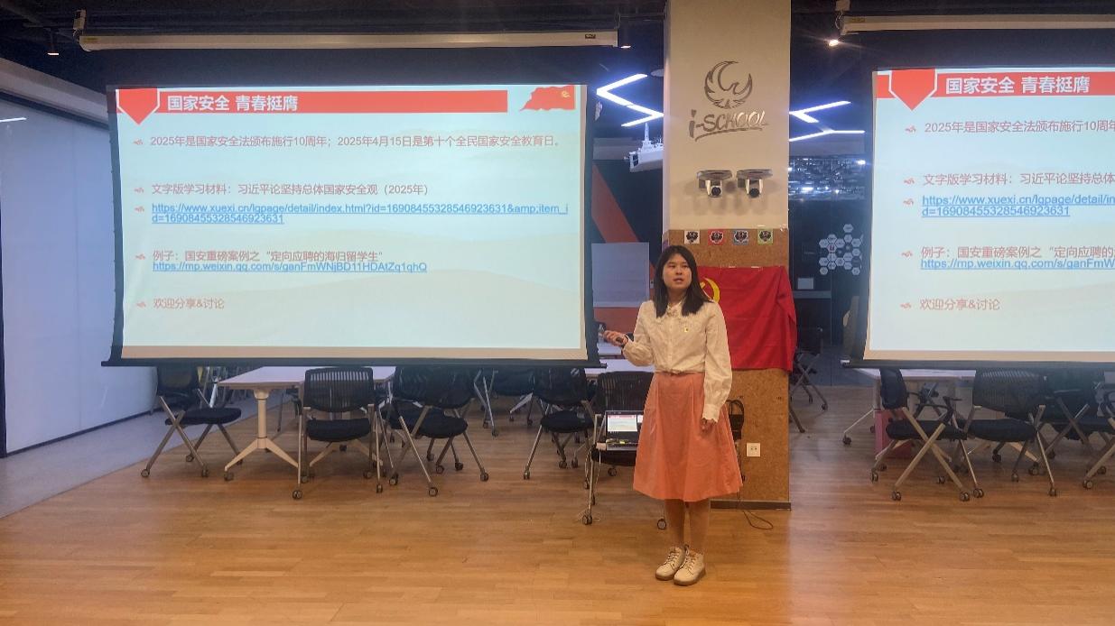 而后,同学们观看了安全机关制作的贴近研究生身份和实际生活的国家安全案例视频——《定向应聘的海归留学生》,提醒大家千万提防境外势力的诱惑、渗透和策反行为。