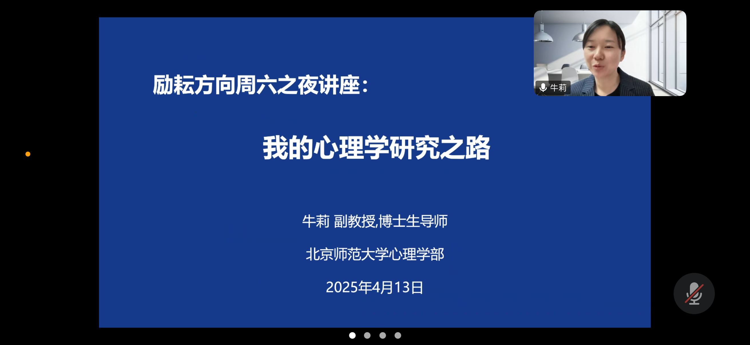 本学期第二次周六之夜活动于4月13日如期而至。鉴于北京当日大风天气,本次活动采取线上形式举行。 为拓宽同学们对心理学研究方向的认知视野,本次活动有幸邀请到beway必威 的牛莉副教授与甄宗雷教授,分享其研究工作及对同学们学习的建议。 牛老师率先分享了其在发展心理学领域的研究成果。牛老师讲述了自己求学过程中的转变,本科阶段学习外语,却因浓厚兴趣投身心理学领域,进而接触发展心理学,并运用心理学方法探究青少年发展中的行为与问题。目前,牛老师聚焦于青少年发展,关注该阶段及其多层影响因素。