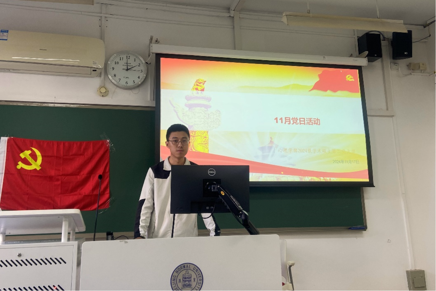 2024年11月17日下午14时,心理学部2024级学术硕士第二党支部于教2楼111顺利开展本月主题党日活动和2024级学术硕士第二团支部团日活动。会议由党支部书记程先楷同志主持。支部9位正式党员和15位积极分子到场参会,班级其他团员同学到场学习。