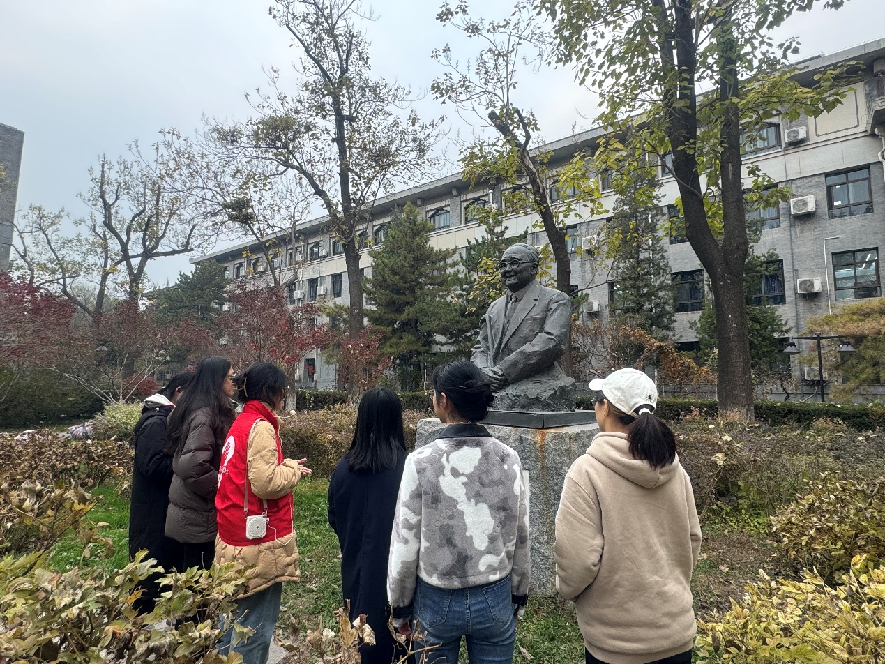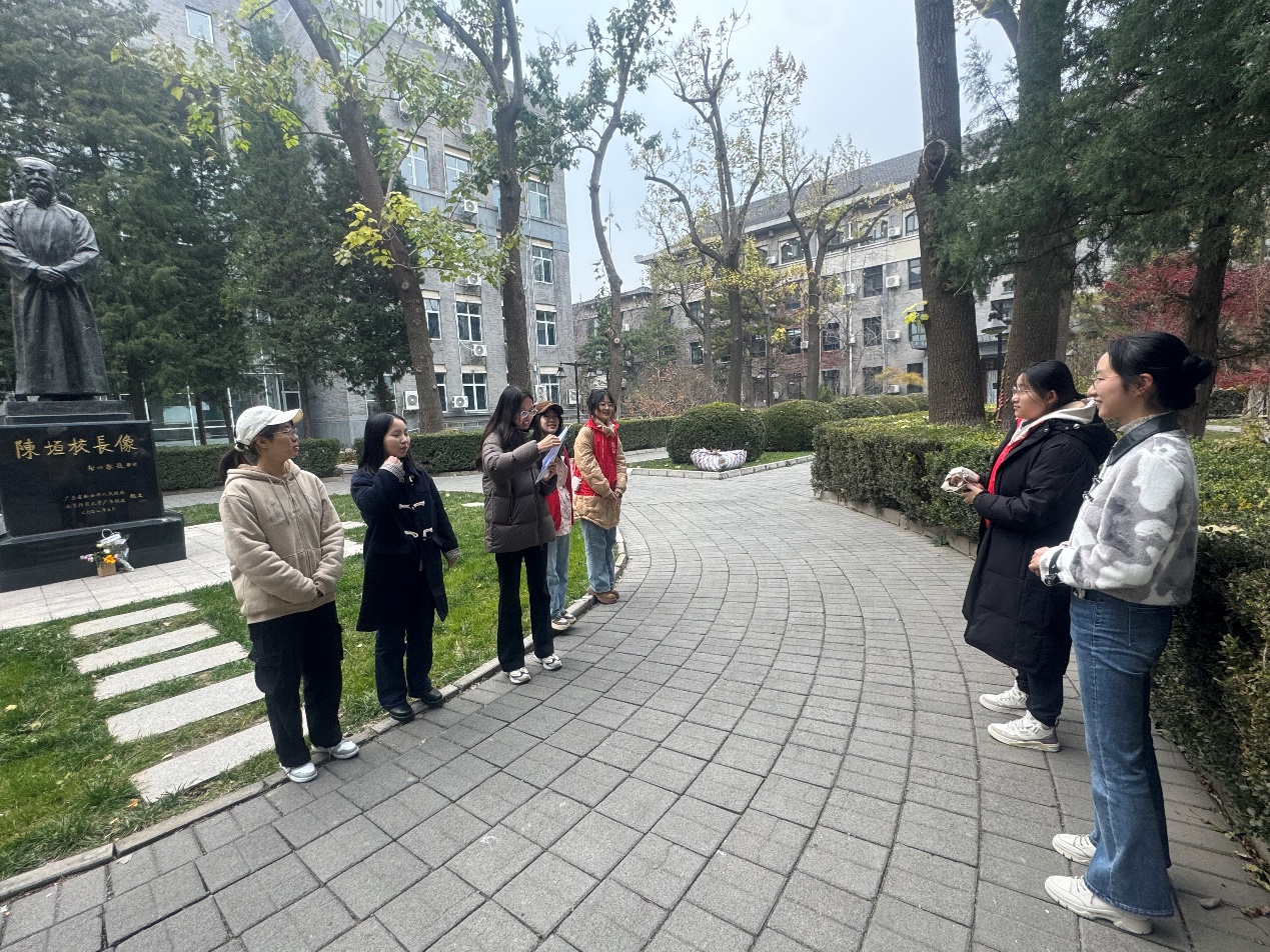 首先,参与活动的同志们在京师广场木铎下集合,由白鸽志愿者讲师介绍“木铎金声”的历史沿革。“木铎金声”寓意着北师大在教育领域的使命和责任、卓越成就和广泛影响以及百年来的精神传承。它不仅是北师大师生对教育事业热爱和执着追求的体现,也是学校发展历程中不可或缺的重要组成部分。