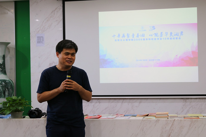 乔志宏老师代表学院向所有返校校友表示了热烈欢迎,并向昔日的学生们介绍了学院在这十年间的发展情况,勉励所有同学继续好好学习好好工作好好生活,践行母校“学为人师、行为世范”的校训精神,做对社会有贡献的心理学人。